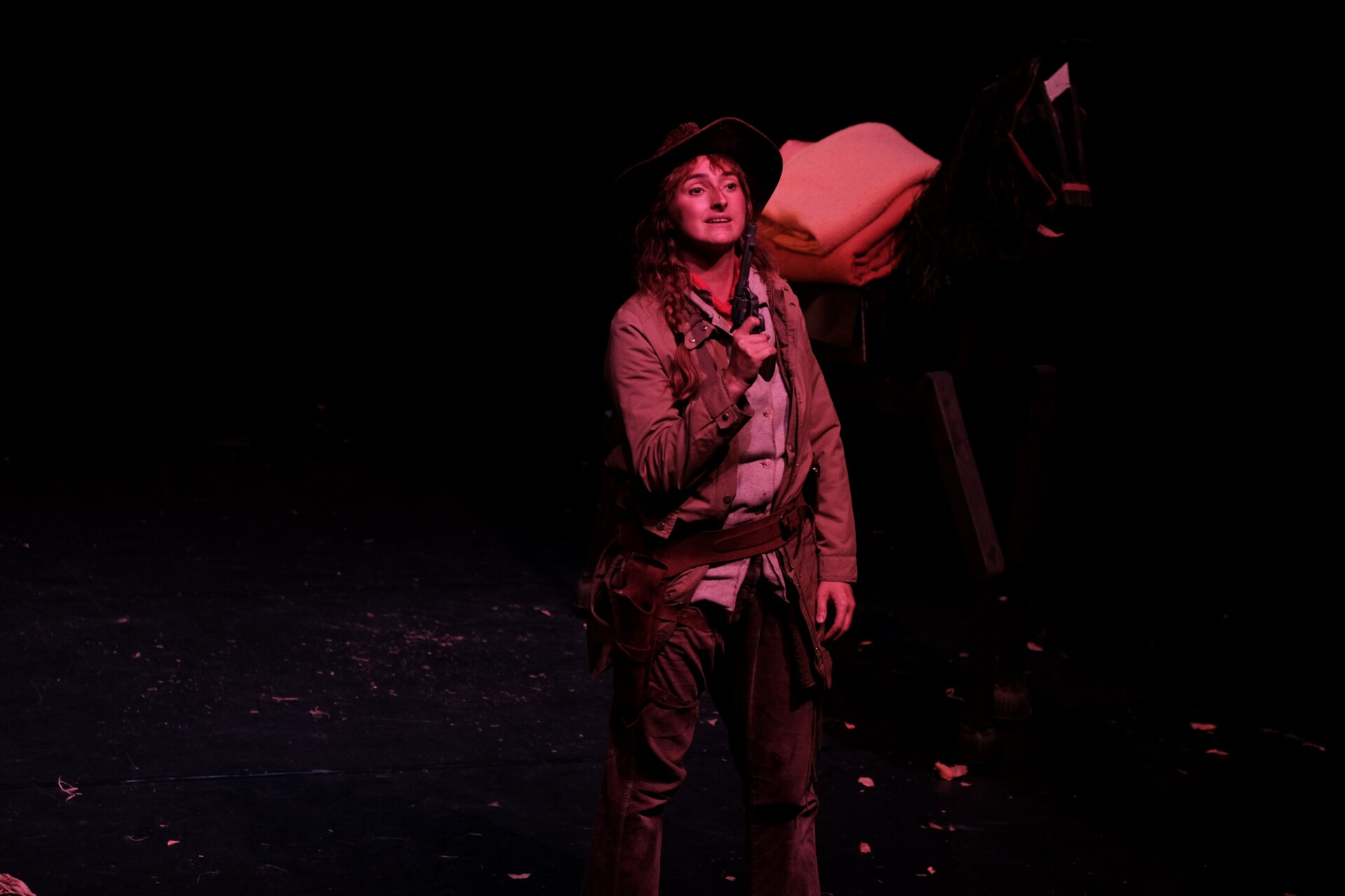 Qu’est-ce que la conquête de l’Ouest ? Comment articuler vie d’aventure et vie de famille lorsqu’on est une femme ? Qui étaient les « amérindiens », les Premières Nations ? Qui était Calamity Jane ? Historique et légendaire, Martha Jane Cannary de son vrai nom, a suscité bien des fantasmes. Dans son receuil épistolaire Lettres à sa fille, elle s’adresse directement à celle qu’elle n’a pas pu élever. Depuis un monde violent où seuls les hommes font l’histoire, elle questionne les modes de vie du Nouveau Monde des pionniers, la frontière entre les « sauvages » et les « civilisés », le pouvoir de se relier à travers le temps et l’espace. Justine Devin s’inspire de ce texte et de contes amérindiens pour évoquer cette femme, sa force, sa singularité et sa liberté.